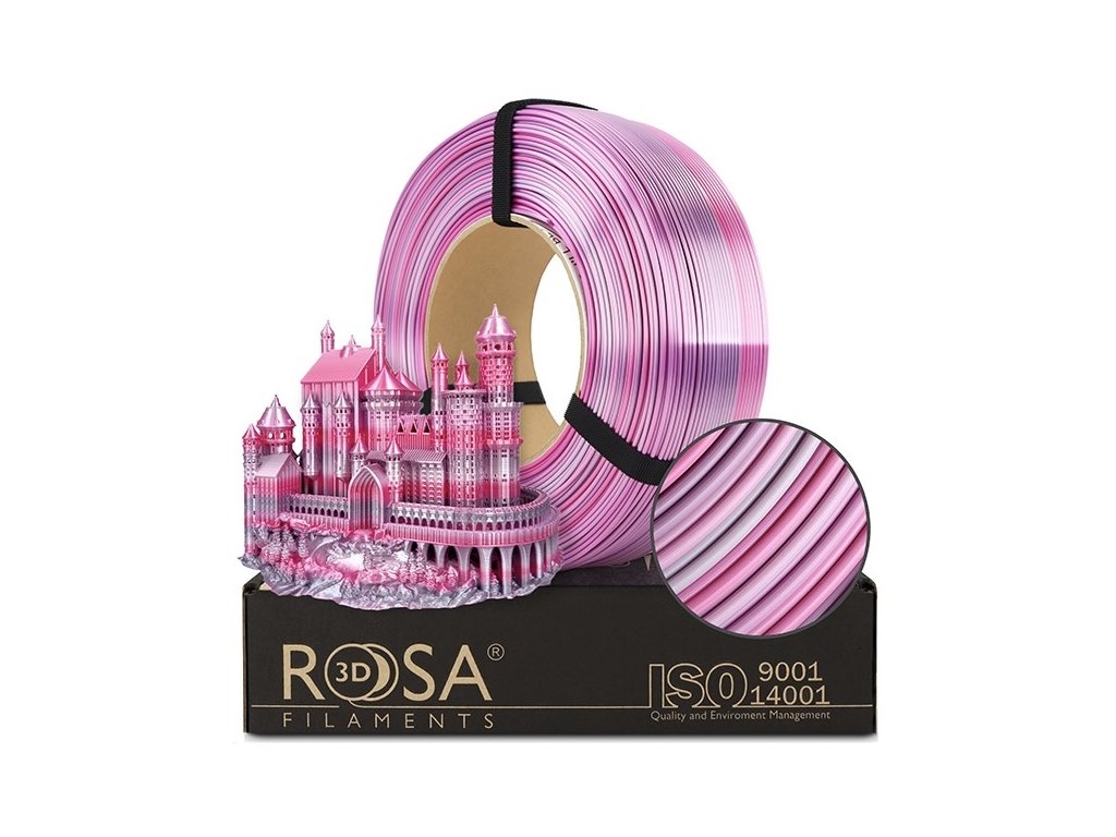 Filament ReFill PLA Multicolor Flower Silk od Rosa3D je lesklý 3D tiskový materiál s kterým máme skvělé zkušenosti, barvy jsou krásně syté a stálé.