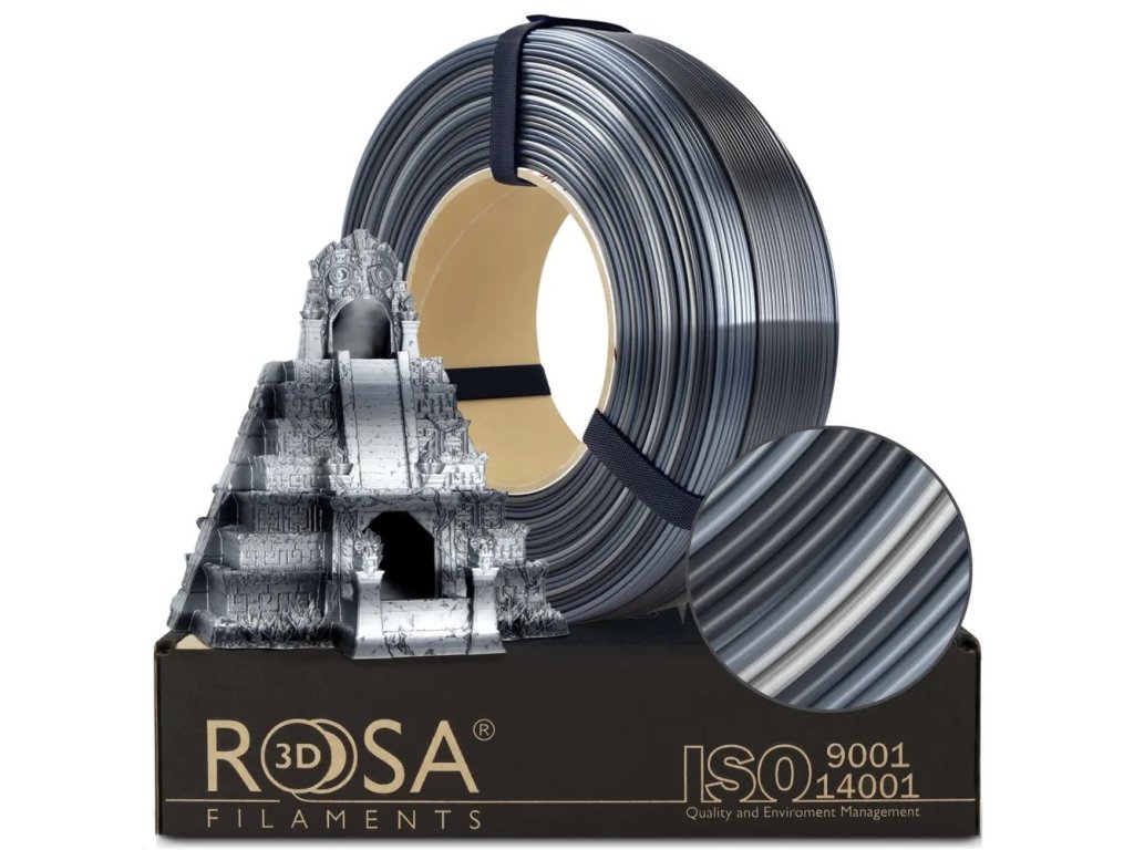 Filament ReFill PLA Multicolor Moon Silk od Rosa3D je lesklý 3D tiskový materiál s kterým máme skvělé zkušenosti, barvy jsou krásně syté a stálé.